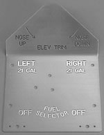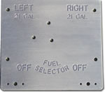 We are set up to engrave fuel selector plates for RV-7 and RV-9 (WITH or WITHOUTmanual trim). We do not, however, provide blank plates at this time. Please send us yours.